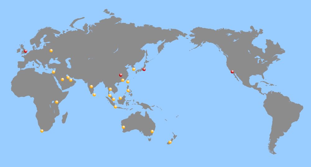 UK USA JAPAN THAILAND MALAYSIA SINGAPORE BRUNEI INDONESIA NEW ZEALAND AUSTRALIA AUSTRALIA PHILIPPINES TAIWAN HONG KONG KOREA CHINA BAHRAIN UAE SAUDI ARABIA ISRAEL RUSSIA INDIA SOUTH AFRICA SRI LANKA KENYA
