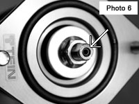 To install a motor for the EDFC ACTIVE (PRO), the set screw inside the piston rod must be replaced with an EDFC Hex Bolt, which comes with the Controller Kit. Please remember to take out the existing set screw, before inserting the EDFC Hex Bolt. Otherwise the EDFC Hex Bolt cannot budge beyond the edge of the piston rod (Photo 6), making it impossible to screw in the motor, which then stays wobbly (Photo 7). Normally it can be tightened as far as in Photo 8.