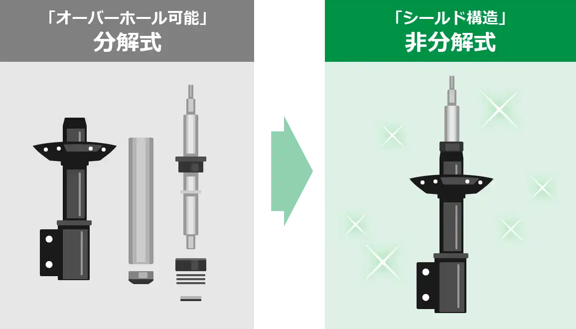 耐久性の向上に加え、長期間にわたり安定した減衰力性能を発揮します。