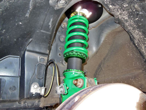 いわずもがなの全長式車高調。ストローク量を気にせず好きな車高に調整できます。