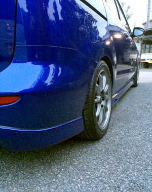 車高は標準から40mmダウン、補強パーツも一通り入れてますが、不整地での突き上げが減少し、一人で走る時も家族を乗せる時もとても満足出来る乗り味になりました。